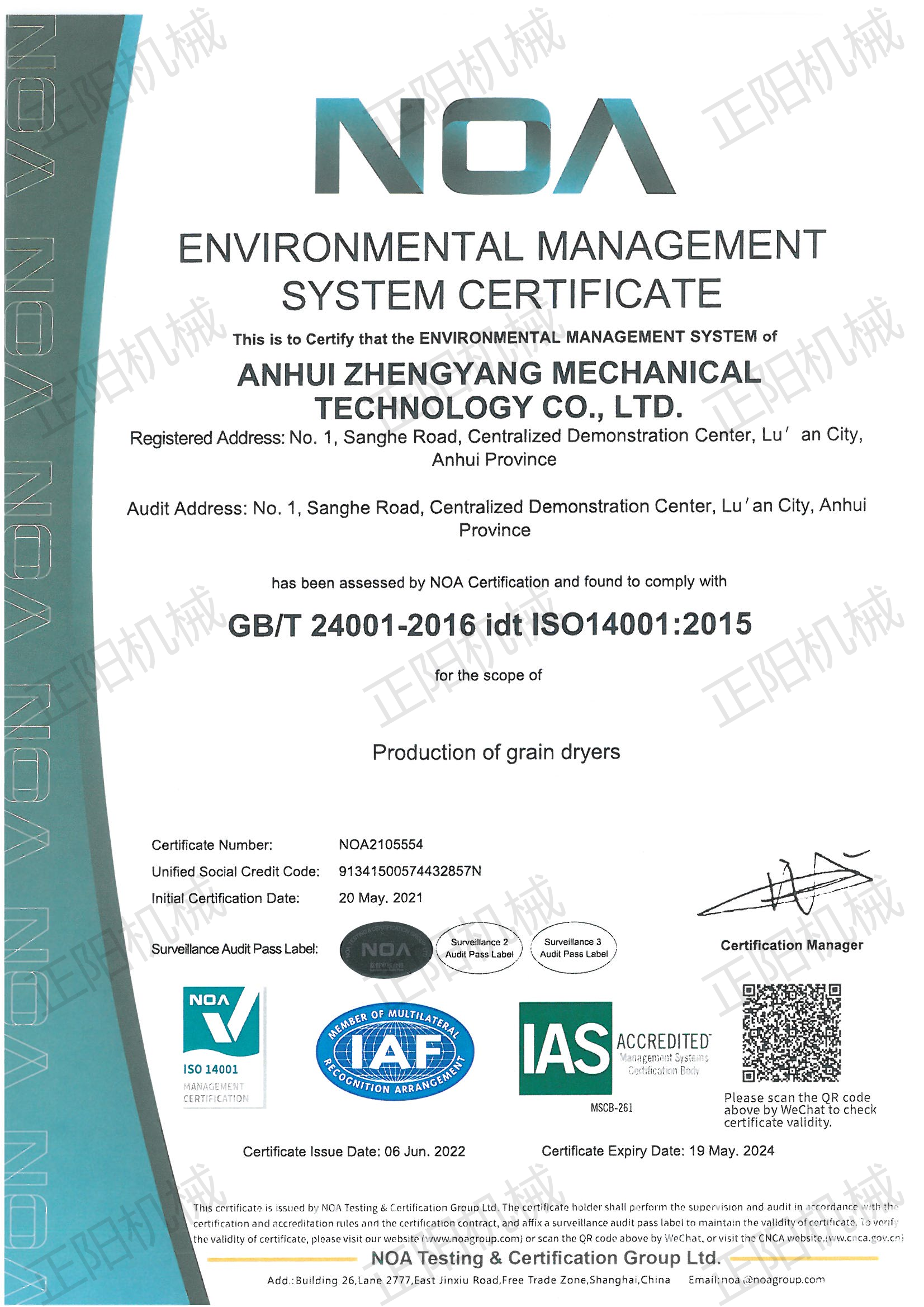 環(huán)境管理體系認(rèn)證證書
