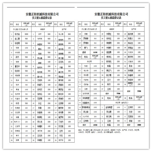 安徽正陽機(jī)械科技有限公司全體員工捐款現(xiàn)場